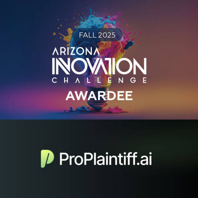 ProPlaintiff AI’s groundbreaking approach was recognized as a winner of the Arizona Innovation Challenge Fall 2025 — learn more about the award here.